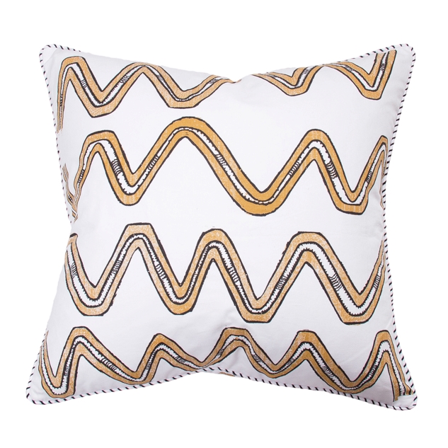 Our 80’s Tribal Waves cushion features a fun, bold design, hand silk screen printed on textural cotton canvas with a contrast stitch piping and the same pattern on the reverse side. Our recommended inner size is 55 cm which we can sell to you separately.
