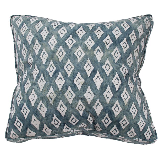 Our Budi Diamond Batik is part of our traditional batik artistry collection. The pattern is processed by hand utilising the special and complex artform of wax resistant dye techniques. Hailstorm Budi Diamond batik is printed on a single oxford cotton canvas with layers of cooling earthy greens and finished with a piped gusset for extra generosity. Our recommended inner size is 60 cm which we can sell to you separately.