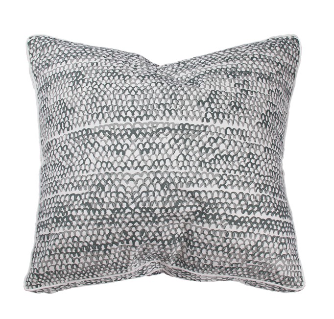 A generous cushion made of double oxford cotton canvas and silkscreen printed from our hand painted fish scale original. This cushion has the same print on the reverse side and a white piped gusset and appeals equally to classic and contemporary styles. Our recommended inner size is 60 cm which we can sell to you separately.