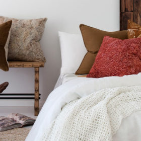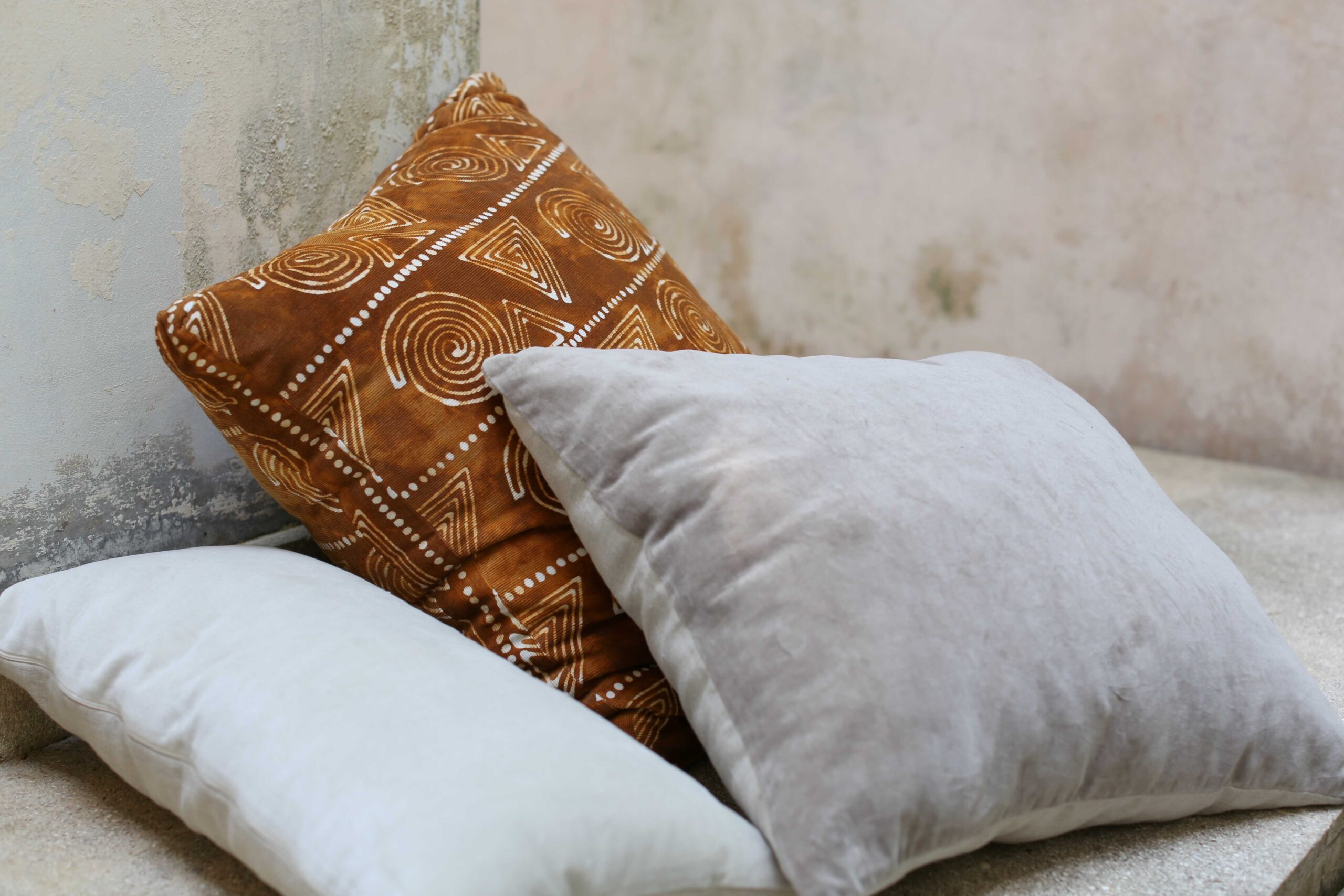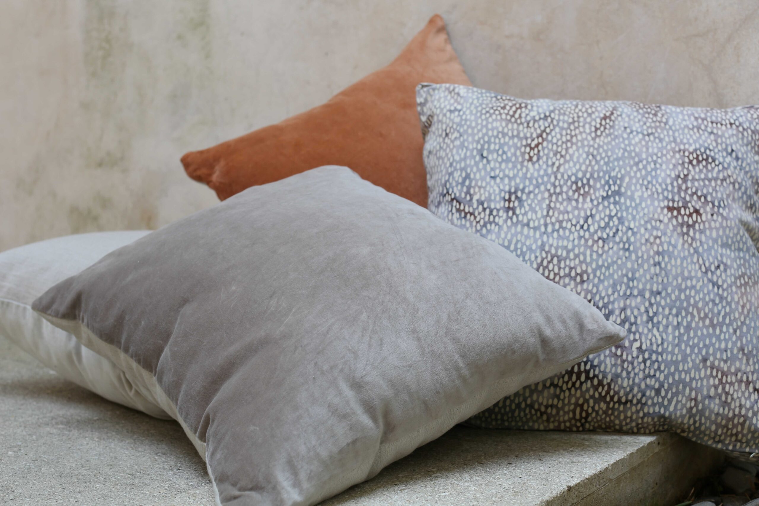 Our ‘essential velvets’ range features luxurious cotton velveteen that has been hand dyed and kissed by the Bali sun. The reverse side is heavy prewashed grey linen. These all season beauties are 100% natural fibre and the custom sized 50 x 55 cm offers extra luxury. Our recommended inner size is 50 x 55 cm in 100% duck feather, which we can sell to you separately.