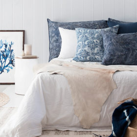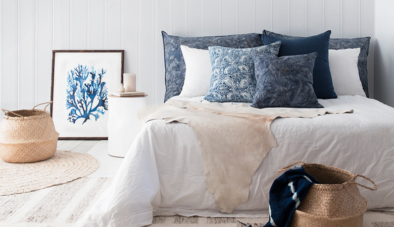 Our indigo batik range works back with neutrals, nauticals and organic blues.
