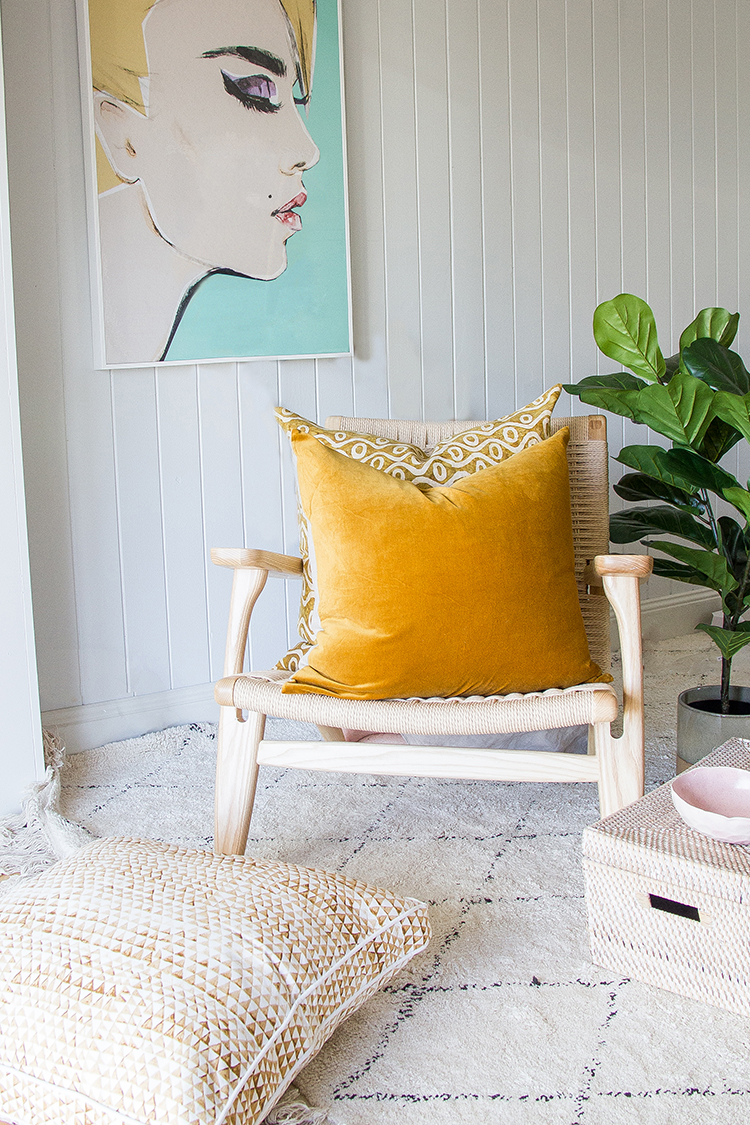 This warm and delicious caramel batik sits beautiful with creamy light tones and also with navy or charcoal. The reverse side is pure prewashed natural linen. The recommended inner size is 60 cm which we can sell to you separately.