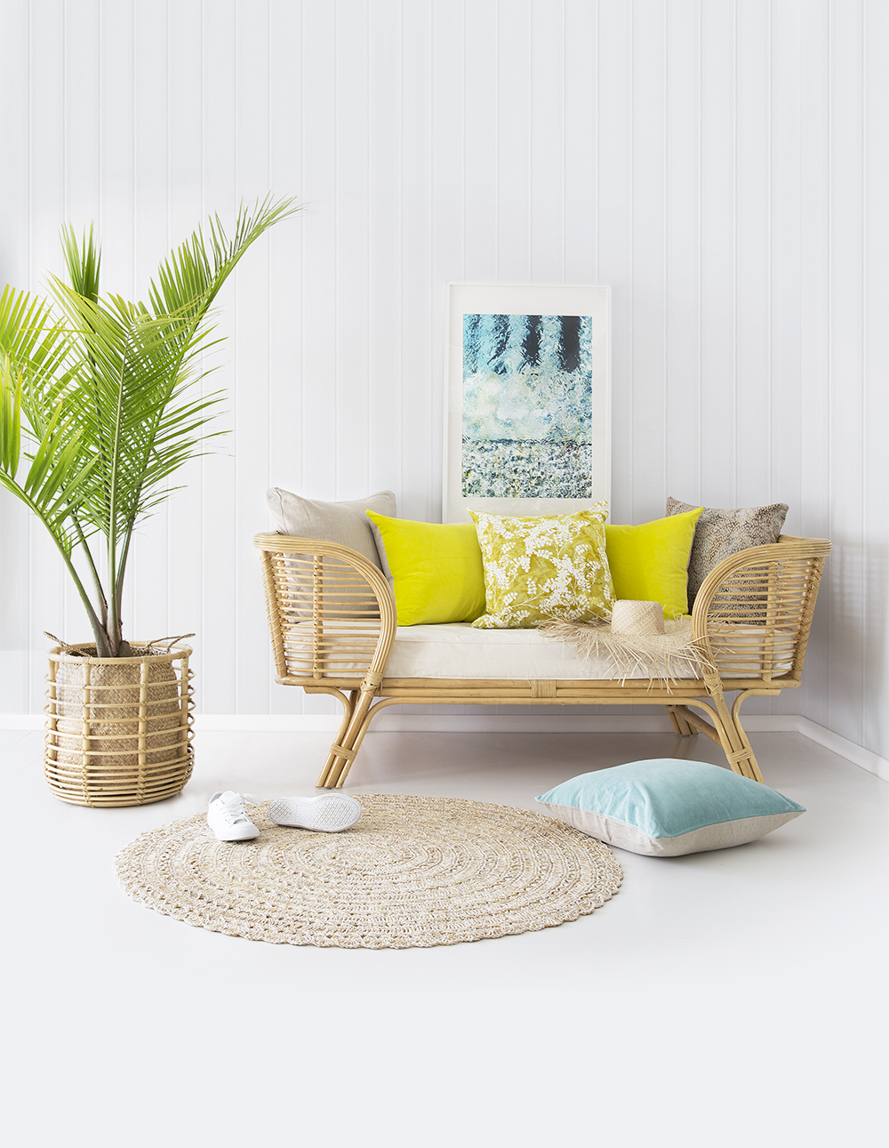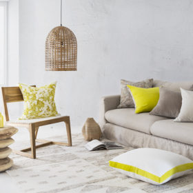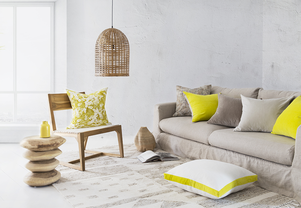 Our fern batik is processed by hand on soft brushed canvas with layers of chartreuse and natural white. Our recommended inner size is 35 x 60 cm which we can sell to you separately.