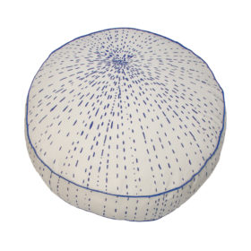 Our royal starburst cushion is made of plush baby cord with a blue satin piped gusset. The royal blue pattern is silk screen printed by hand from our original artwork with the same design continued onto the reverse side. Our recommended inner size is a 60 cm round which we can sell to you separately.